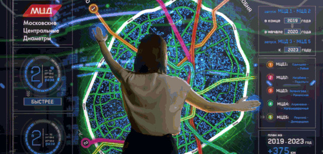 3D視圖展示方式由此應(yīng)運而生。在莫斯科中央MDC展示館發(fā)布的一條宣傳片中,很好的展示了3D可視化動態(tài)視圖的魅力與優(yōu)勢。